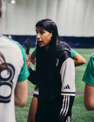 Founder and Head Coach Sammy York is a CONCACAF C Licensed coach currently advancing through UEFA coaching pathways. With over 15 years of playing experience at competitive and international levels, her background includes competing in the CSL, OWSL, OCAA, serving as co-captain of her college team, and representing Team Canada at the 2022 Maccabi Games.